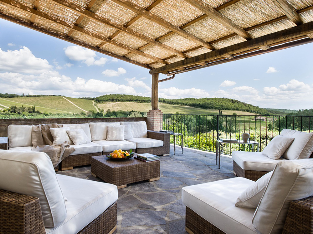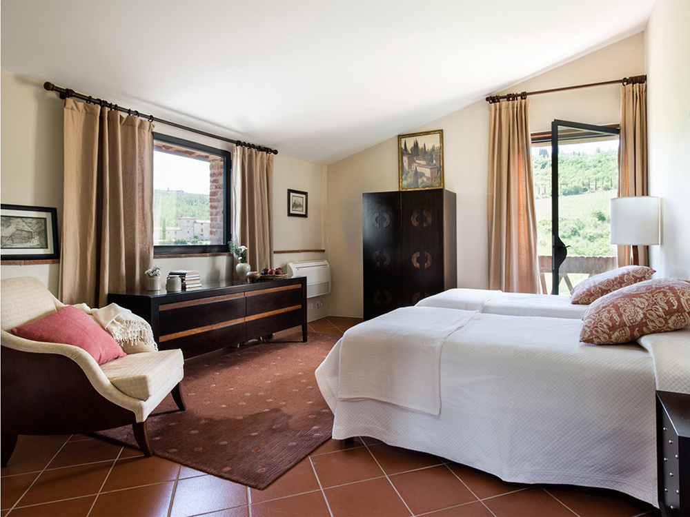 This former hayloft to the Castle of Cerreto in Chianti Italy has been totally transformed into a luxurious yet relaxed six bedroom country home. It is an unusually light and airy property with a glorious panorama of vineyards and farmhouses nestled in the rolling countryside. With breathtaking views and thoughtfully renovated interiors this villa is the perfect place to create memorable moments in Tuscany with friends and family.